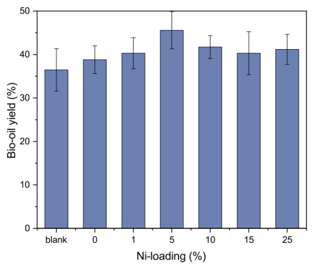 圖5. 不同催化劑對(duì)生物油產(chǎn)率的影響。