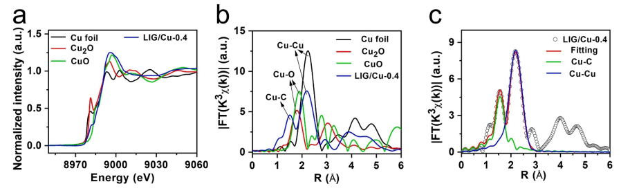 3)的EXAFS譜。(c) LIG/Cu-0.4樣品的Cu K-edge EXAFS光譜(R空間,k