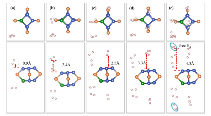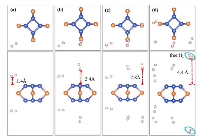 圖8. 吸附在(a) TTG (b) N-TTG和(c) B-TTG上兩個(gè)H