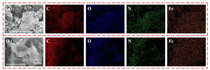 圖2. MAFcNTO的EDS譜圖。(a)原始的MAFcNTO, (b)真空冷凍干燥后的MAFcNTO。
