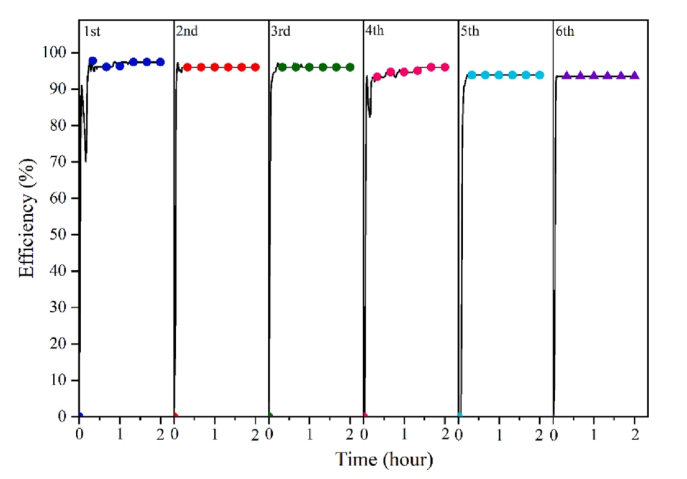 0的氧化效率隨反應溫度的升高而降低,依次為η