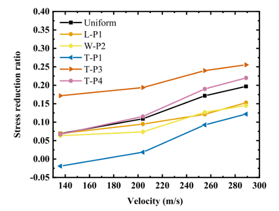 圖9. GPL/Al納米復合材料板的速度與應力減小率的關系。