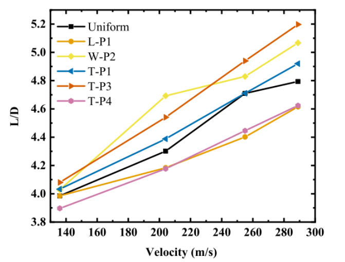 圖10. GPL/Al納米復合材料板氣動效率與速度的關系。