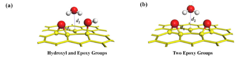 圖2. (a)羥基和環(huán)氧基團(tuán)(b)兩個(gè)環(huán)氧基團(tuán)的氧化石墨烯和Copper -GO的C-O距離(d