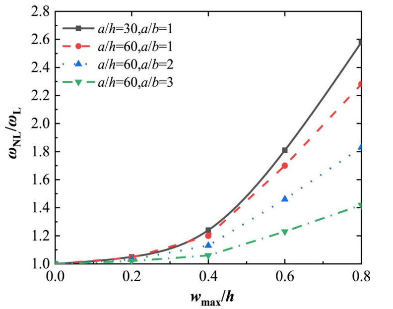 圖7. 非線性頻率比隨寬高比和長厚比的變化。