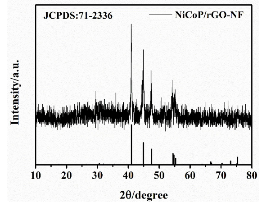 圖1. NiCoP/rGO-NF復(fù)合材料的XRD譜圖。