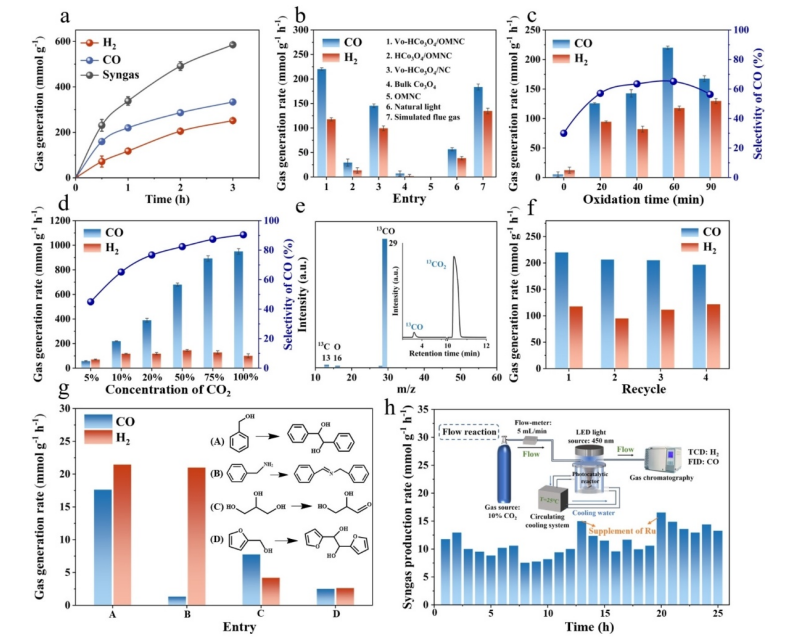 2/Ar) 的光催化轉(zhuǎn)化表現(xiàn)出前所未有的活性,合成氣產(chǎn)量為 337.8 或 95.2 mmol g