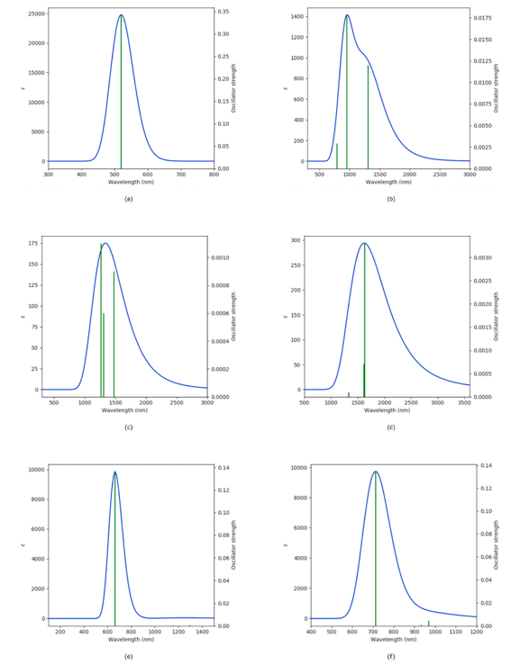 圖6. 使用B3LYP–TD DFT的原始和金屬摻雜石墨烯系統的紫外-可見光譜。