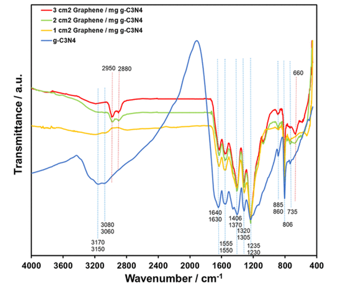4/石墨烯納米復(fù)合材料作為光催化劑通過熱還原合成。FTIR光譜分析表明═在合成過程中,g-C