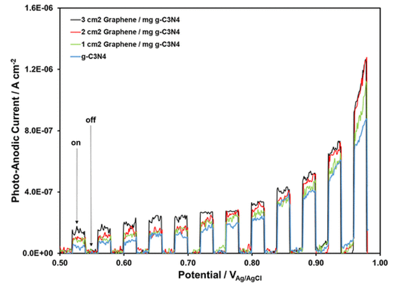 4和石墨烯薄膜之間可以形成C鍵。光電流測量表明,石墨烯的存在對g-C