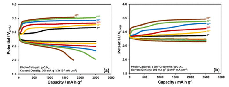 -2)電流密度的光輔助充電條件下,g-C