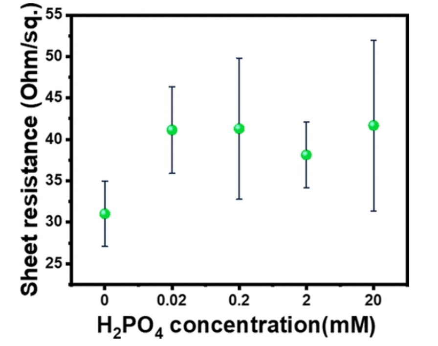 4濃度下不含磷酸鹽和含磷酸鹽的石墨烯樣品的薄層電阻。