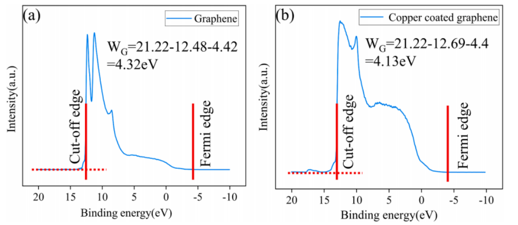 圖8. 石墨烯和銅涂層石墨烯的紫外光電子能譜表征。