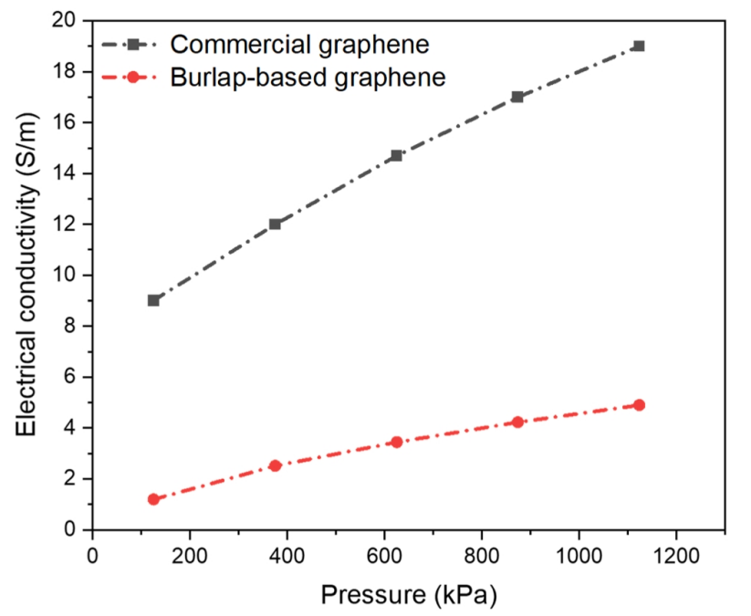 圖4. 粗麻布和商用級石墨烯材料的電導(dǎo)率結(jié)果比較。