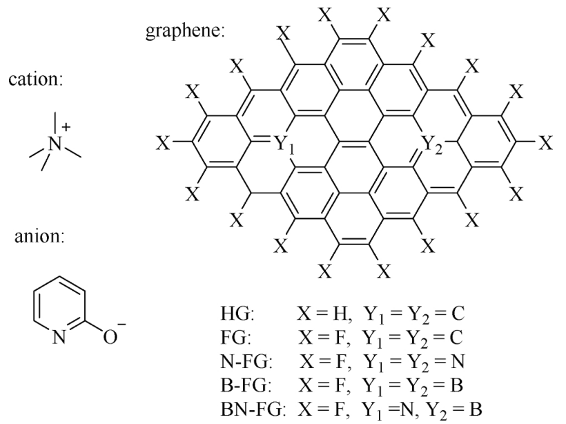 圖1. [TMA][HPy]和石墨烯的陽/陰離子結(jié)構(gòu)。