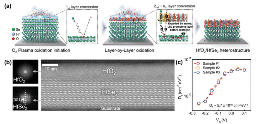圖6.通過天然氧化物進(jìn)行3D-on-2D集成。(a) 使用氧氣等離子體氧化的HfO