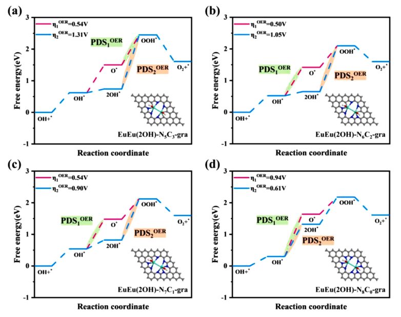 相關(guān)研究成果由江西理工大學(xué)材料冶金化學(xué)學(xué)部、材料科學(xué)與工程學(xué)院Chao Liu等人于2024年發(fā)表在Molecular Catalysis (https://doi.org/10.1016/j.mcat.2024.114053 )上。原文:Theoretical study on oxygen evolution reaction mechanism of double rare earth europium-doped graphene under hydroxyl modification in alkaline environment