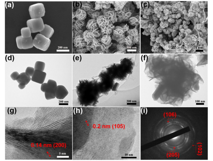 2@CM@rGO的TEM圖像(g, h) HRTEM圖像和(i) Cu