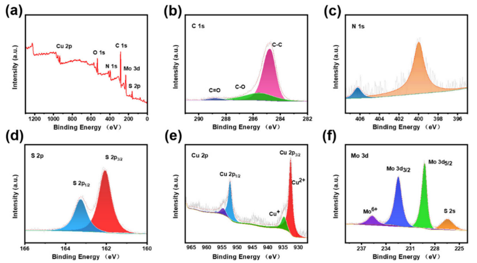 2S/MoS2@rGO的FT-IR光譜。(c) Cu