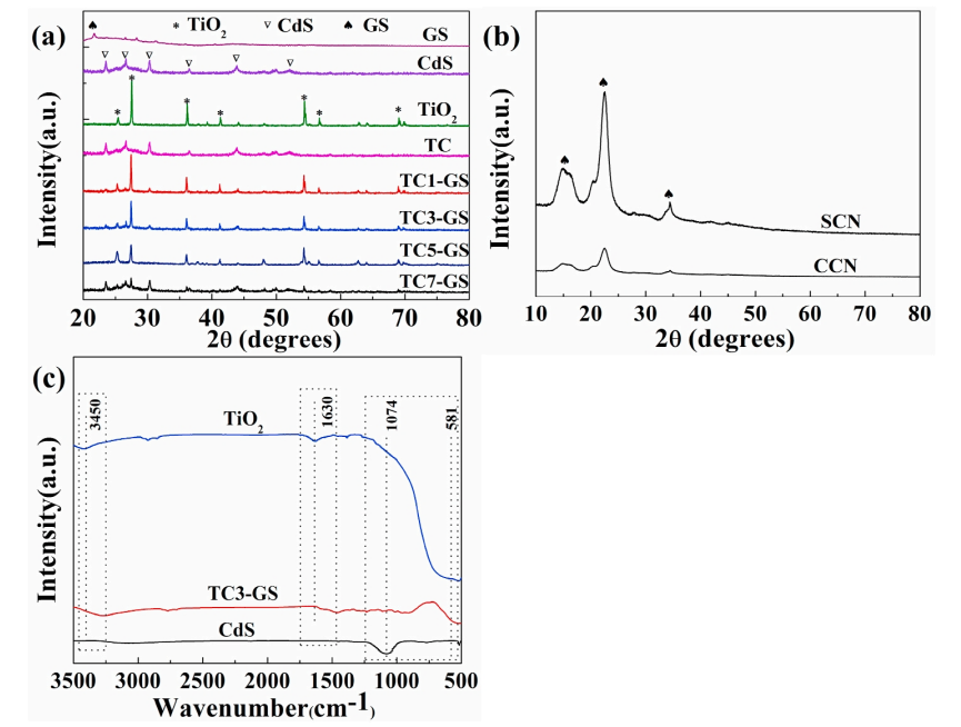 2、(b) CdS、(c) TC、(d) GS);TEM 圖像((e) GS、(f) TC3-GS);HRTEM((g) GS、(h) TC3-GS。