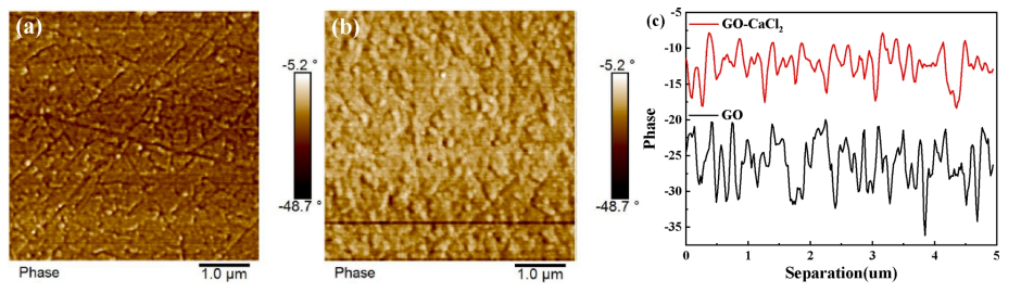 2 (b)、(c)的EFM圖像:GO和GO-CaCl