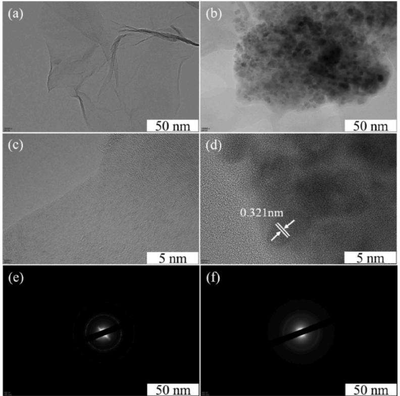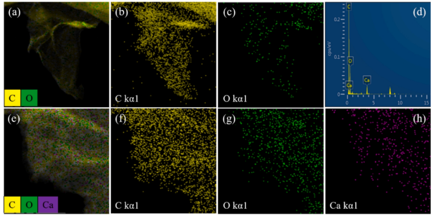 圖6. 在TEM模式下繪制GO (a、b和c)和GO-CaCl