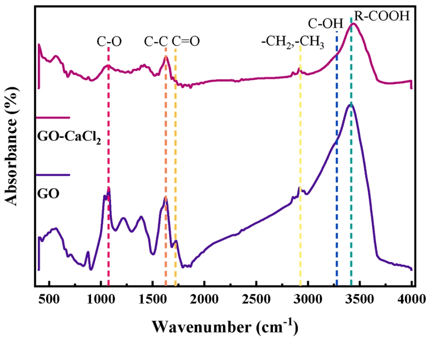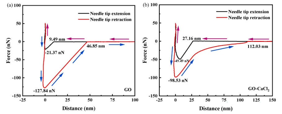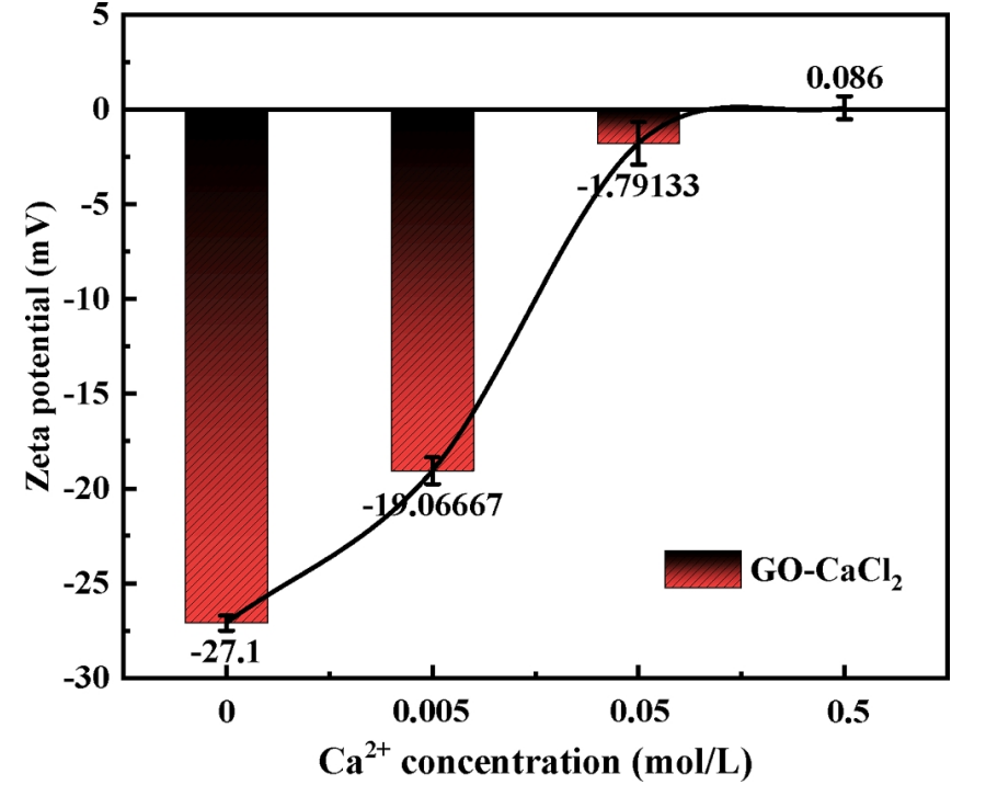 2+的引入致使氧化石墨烯層的重新聚集,氧化石墨烯中含氧官能團(tuán)的比例顯著增加。AFM和zeta電位結(jié)果表明,在Ca