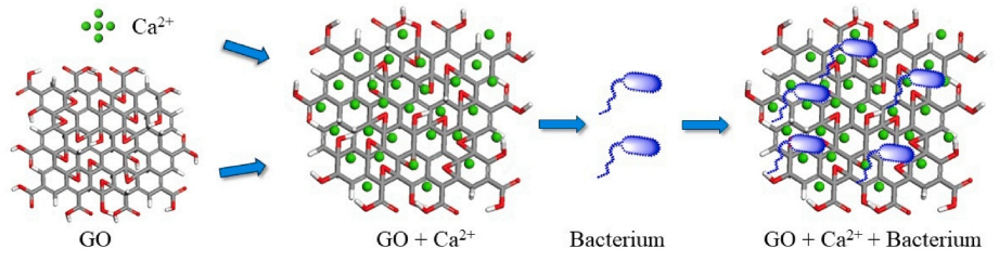 2+的存在下,氧化石墨烯表面的負(fù)電荷減少,從而減少了對細(xì)菌的靜電排斥。這導(dǎo)致氧化石墨烯表面的吸引力逐漸增加,并吸附更多的細(xì)菌。Ca