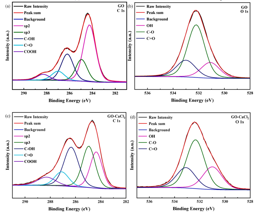 圖8. XPS光譜:(a)GO和GO-CaCl