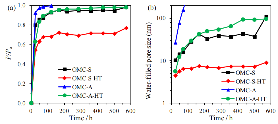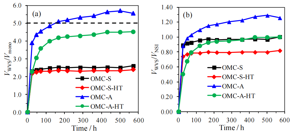 “完全干燥時間”反映毛細作用力與孔道潤濕性的競爭關系,量化OMCs表面能及孔隙輸運效率;
