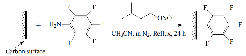 亞硝酸戊酯作為硝化試劑,可能與碳表面活性位點(如缺陷位點、邊緣碳原子)發(fā)生硝化反應(引入硝基-NO?)或酯化反應(生成C-O-NO鍵),具體路徑取決于表面電子狀態(tài)及溶劑環(huán)境;