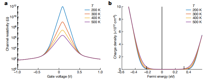 遷移率隨溫度顯著上升(2–5500 cm² V?¹ s?¹)。