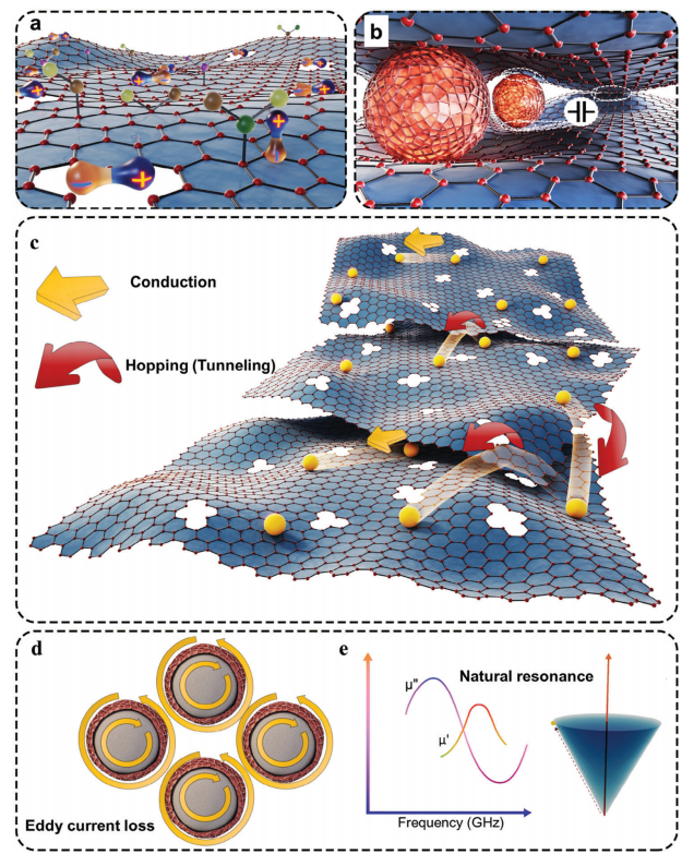 內(nèi)部吸收:電磁波進(jìn)入材料后,通過導(dǎo)電損耗(歐姆損耗)和極化損耗(表面官能團(tuán)偶極子重排)衰減。