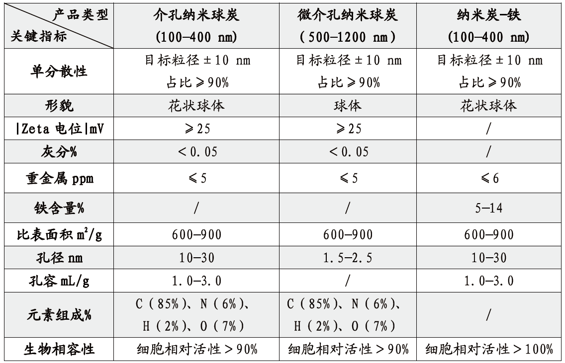 親水性納米球炭參數(shù)