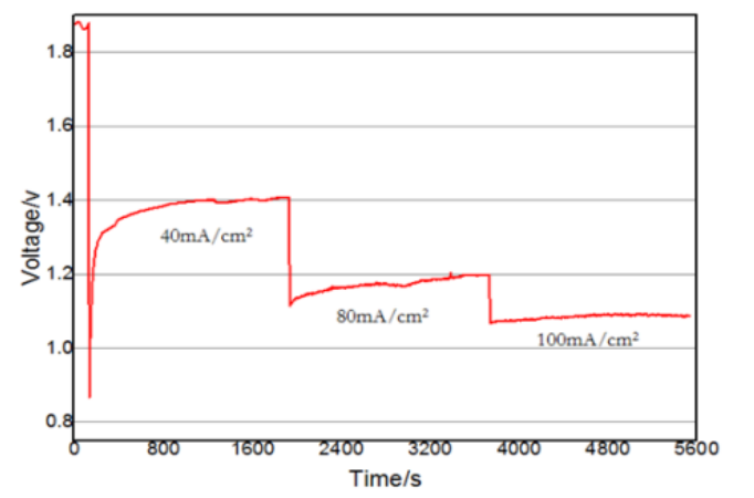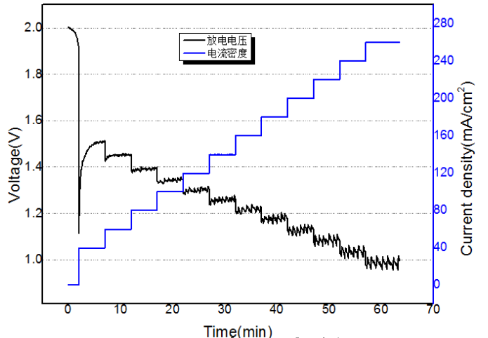 對(duì)比例采用輥壓法制備的氣體擴(kuò)散層的恒流放電曲線