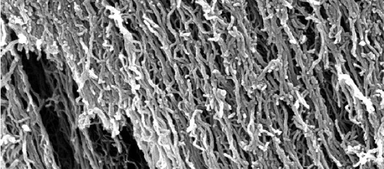 取向性多壁碳納米管JCAMT系列(Oriented Carbon Nanotubes,O-CNTs)以束狀聚集,并沿同一方向取向排列,其長(zhǎng)度可達(dá)100 微米。是乙炔在高溫條件下經(jīng)鎳基催化劑催化裂解制備得到的,具有優(yōu)異的導(dǎo)電性能和良好的分散性。